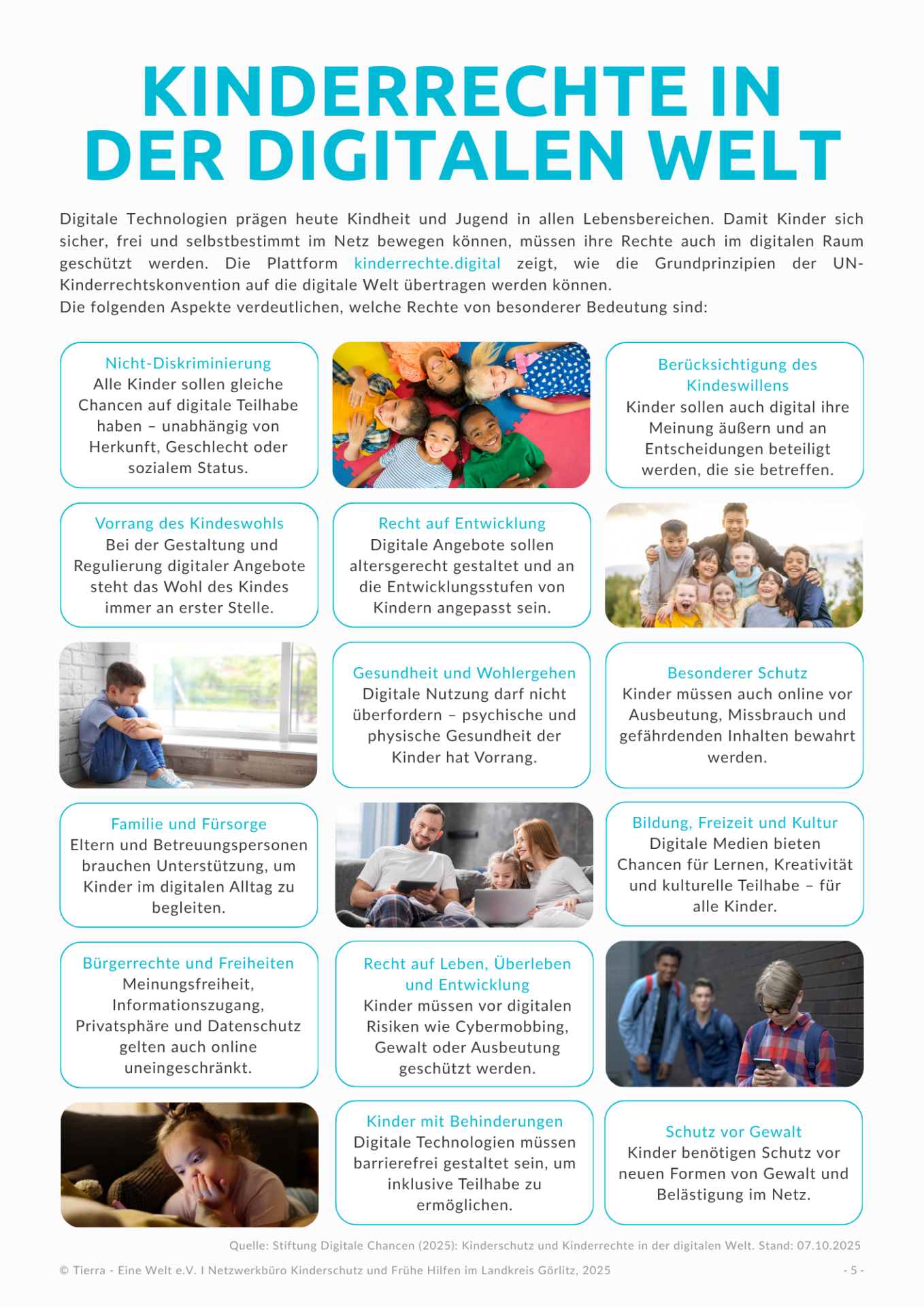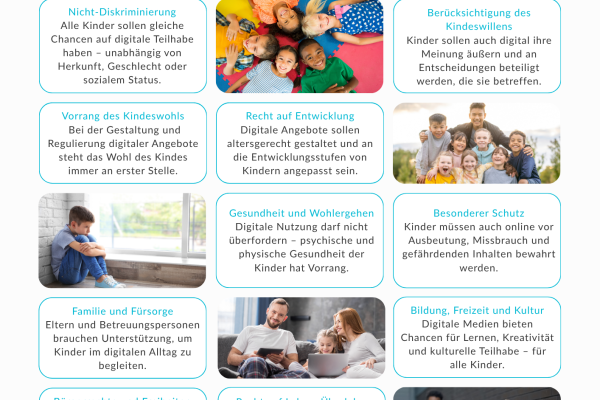 Außerdem beleuchten wir die Kinderrechte in der digitalen Welt und stellen die wichtigsten Informationsplattformen und Unterstützungsangebote vor, damit Sie einen umfassenden Überblick über das Thema erhalten.